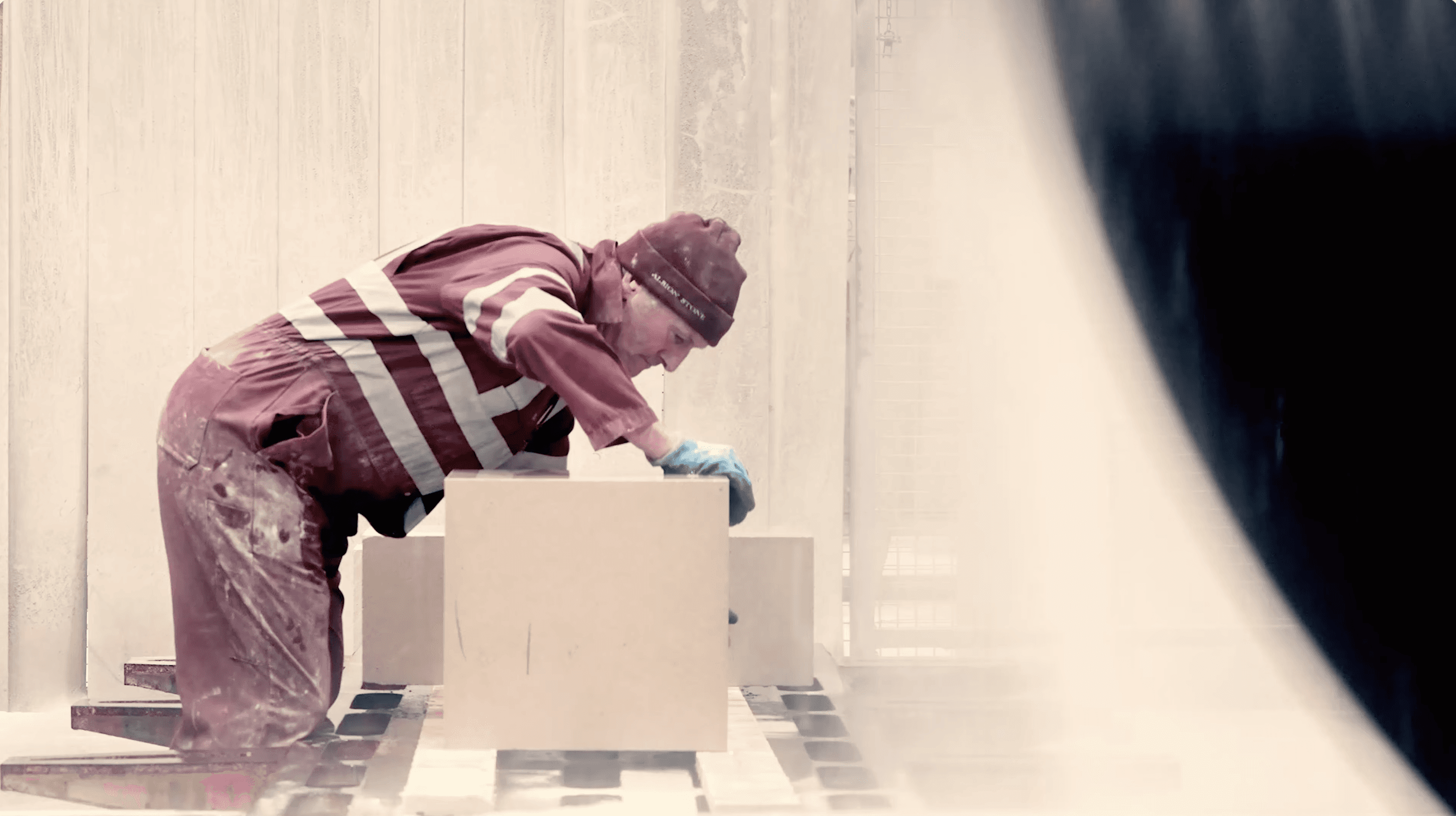We were captivated by the connection between nature’s raw beauty and human craftsmanship. We wanted not only to document the journey of the limestone but also to showcase the craftsmen who fabricate the stone and the utterly unique location of the Isle of Portland.